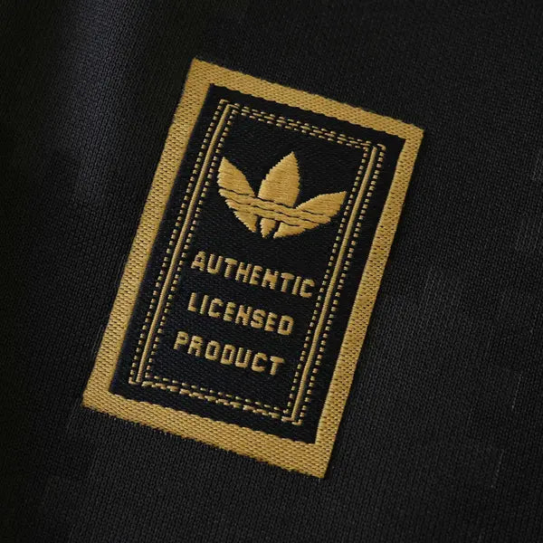 La gola es redonda en rojo y las tres rayas de Adidas se encuentran en los hombros, también en rojo. El escudo del Bayern de Múnich se sitúa en el lado izquierdo del pecho, mientras que el logo de Adidas aparece en rojo, en el lado derecho. El uniforme se completa con pantalones y medias grises oscuros.