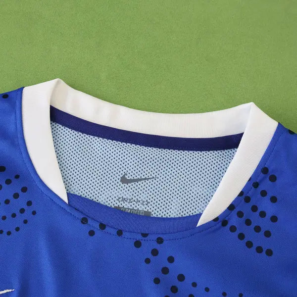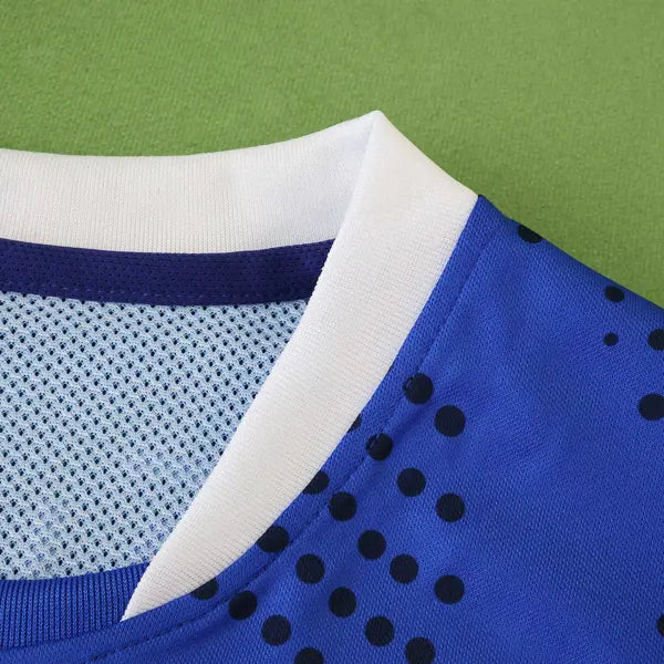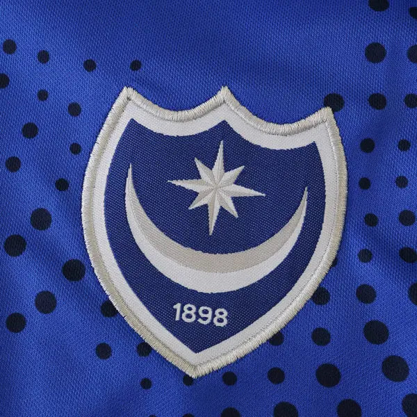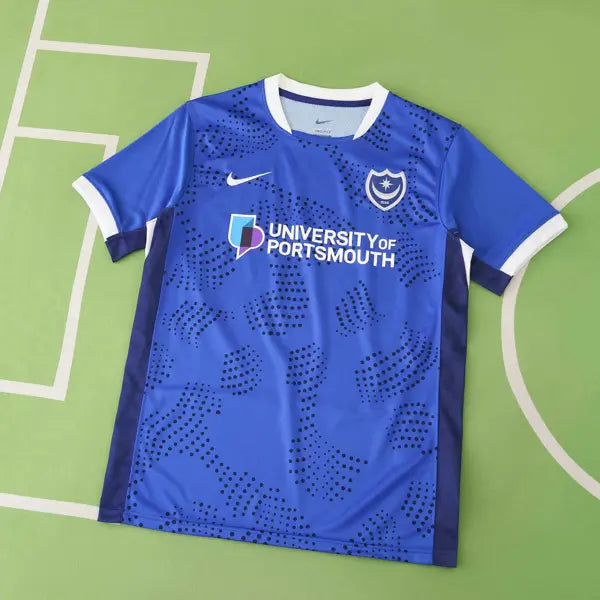 La nueva camiseta de visitante del Portsmouth para la temporada 2024-2025 en la Championship presenta un diseño moderno y atrevido, con una combinación de colores que destaca en el campo.