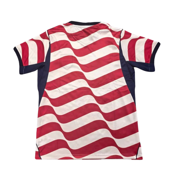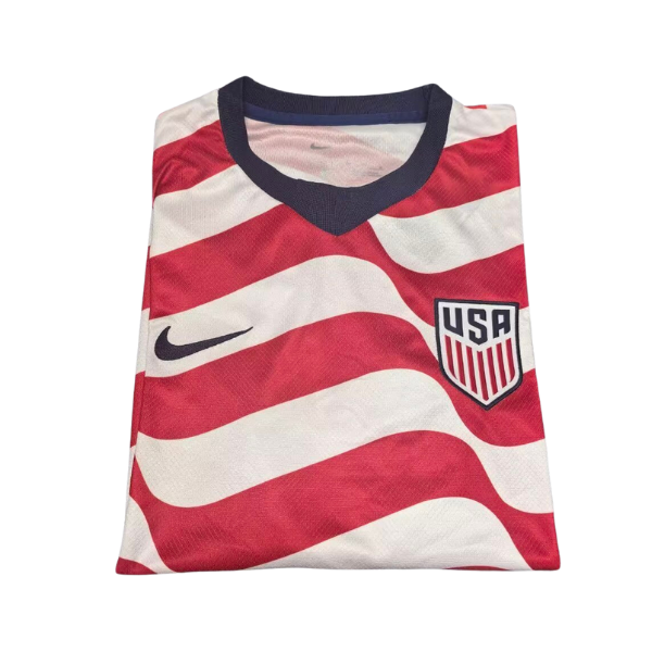 La nueva camiseta titular de Estados Unidos, como se mencionó anteriormente, rinde homenaje al "patriotismo atemporal" presente en el país y tiene como lema la frase "Una nación, un equipo", que aparece en el interior.
