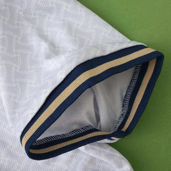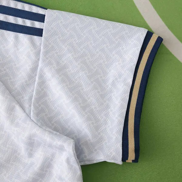 La nueva camiseta titular de Italia presenta un diseño clásico con un toque moderno. Predomina el color azul con detalles en blanco. El diseño incluye un patrón de líneas diagonales en blanco en la parte frontal, que aporta un toque elegante al uniforme. La gola es redonda en blanco, con detalles en azul. Las mangas también son azules, con detalles en blanco en los bordes. El escudo con el águila de Italia se ve en el lado izquierdo del pecho, mientras que el logo de Adidas también tiene el color blanco. El uniforme para juegos como mandante del equipo italiano se completa con pantalón blanco y calcetines azules.