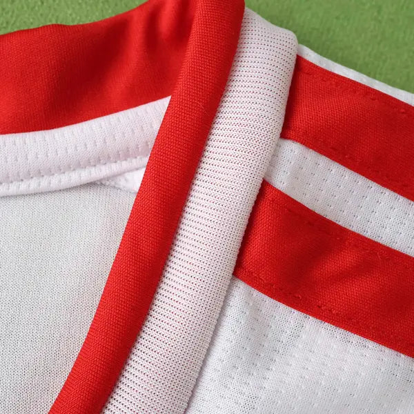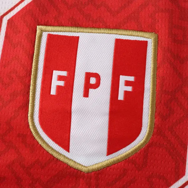 La nueva camiseta titular de Perú presenta un diseño clásico con un toque moderno. El color predominante es el blanco, con detalles en rojo y azul. El diseño incluye elementos tradicionales peruanos, como la banda roja que representa la bandera del país. La gola es redonda en rojo y los detalles en las mangas son en azul. El escudo de la selección peruana se encuentra en el lado izquierdo del pecho, mientras que las icónicas tres rayas de Adidas se sitúan en los hombros. El uniforme se completa con pantalones azules y medias blancas.