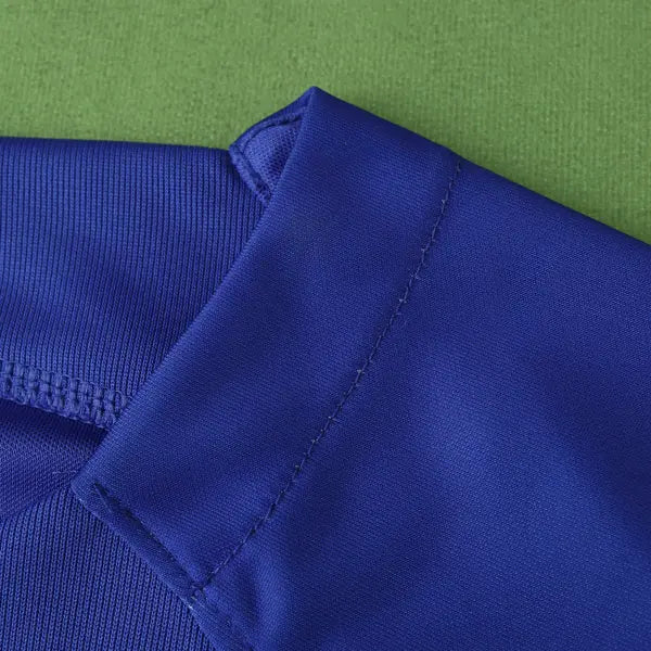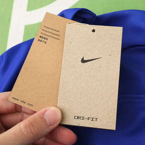 La nueva camiseta titular de Brasil presenta un diseño clásico con un toque moderno. Predomina el color amarillo con detalles en verde y azul. El diseño incluye elementos tradicionales brasileños, como la bandera nacional, que se encuentra en la franja horizontal verde, que representa la bandera del país. La gola es redonda de color verde, combinando con los detalles en las mangas. El escudo de la selección brasileña se ve en el lado izquierdo del pecho, mientras que el swoosh de Nike aparece en el lado derecho, en verde. El uniforme se completa con pantalones azules y medias amarillas.